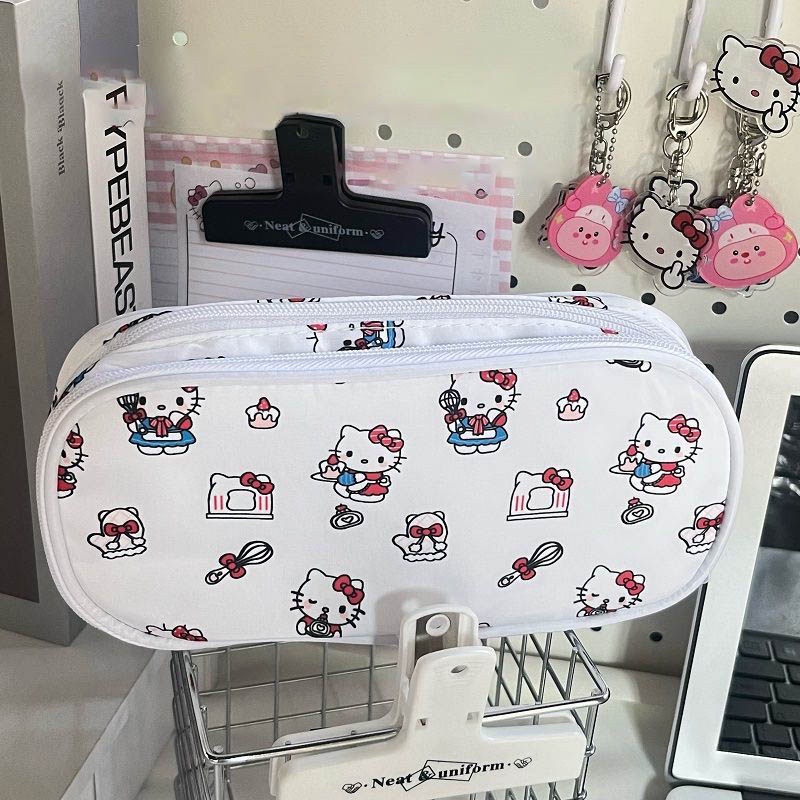 Sanrio Saco De Lápis Hello Kitty Sacos De Papelaria Para Estudantes Lona De Grande Capacidade Material De Escritório Escolar