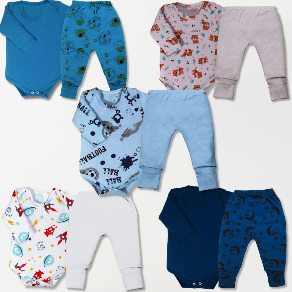 Kit 10 Peças Body E Mijão Estampado 100% Algodão Menino