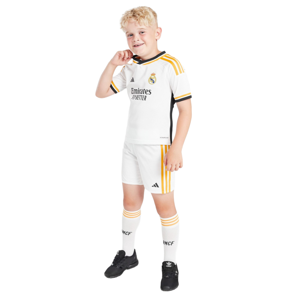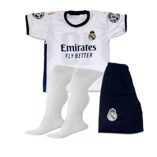 Conjunto Infantil e Juvenil Uniforme de Futebol Real Madrid