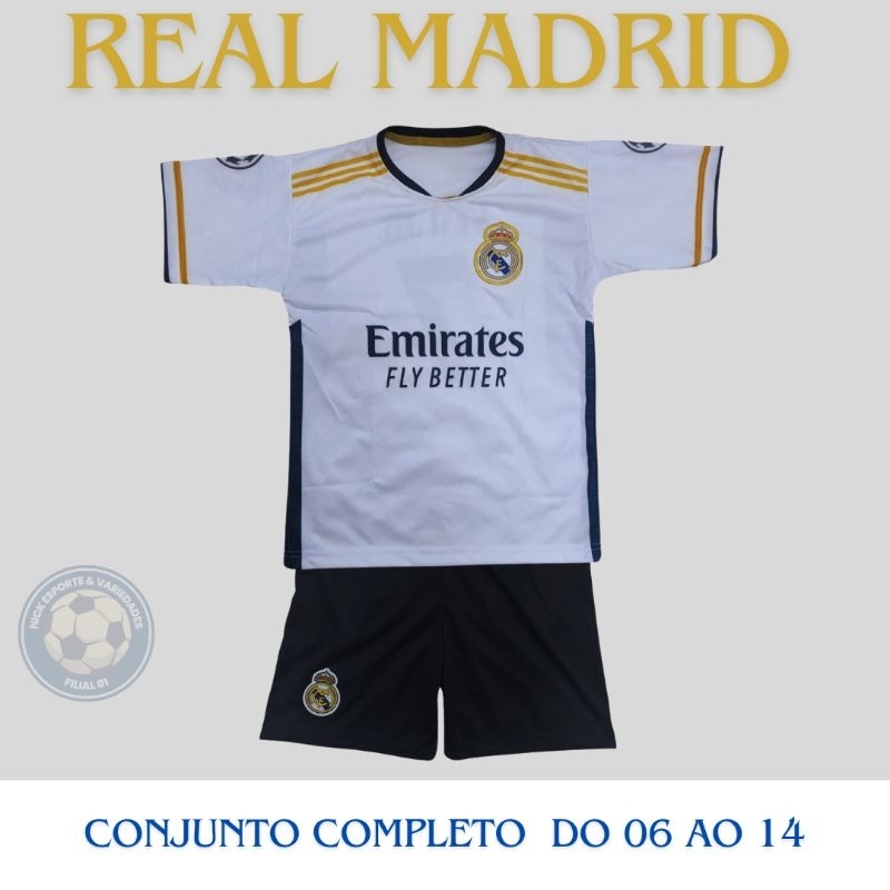 Camisa de Time com Shorts real Madrid Infantil Conjunto Futebol