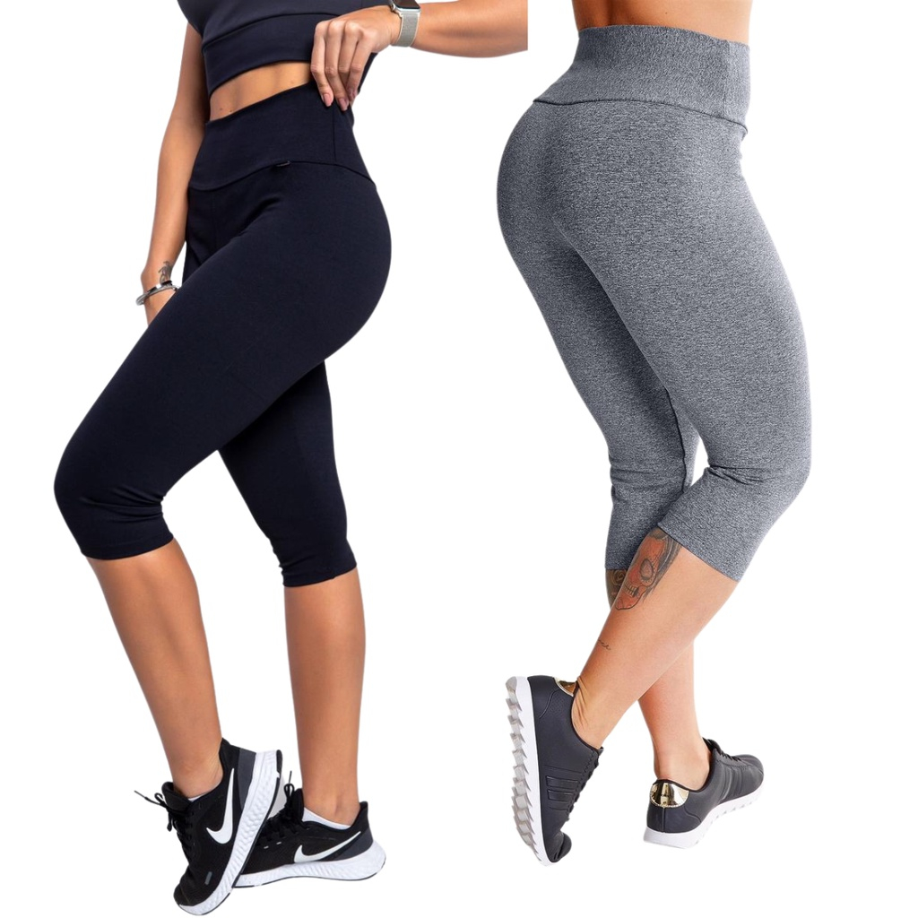 kit 2 calça legging corsário cintura alta feminina academia fitness lisa
