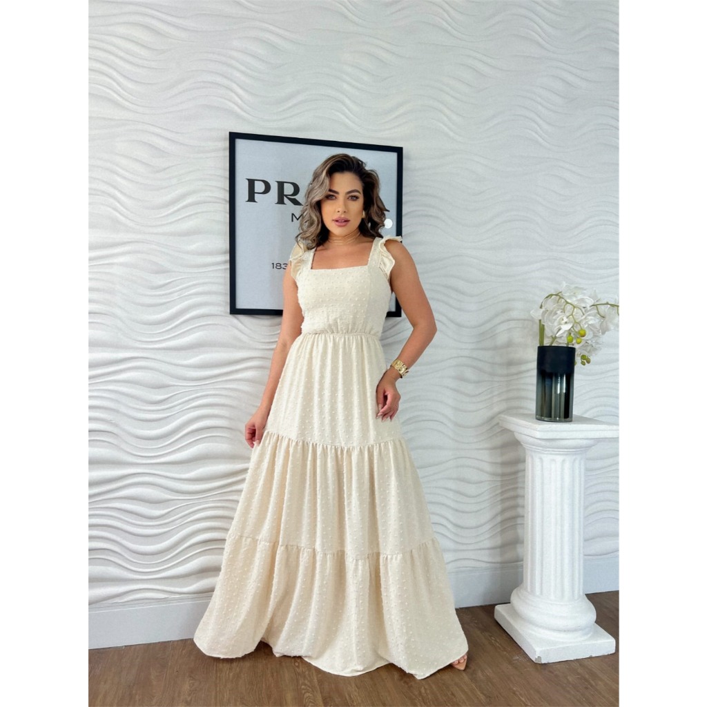 Vestido longo com Alça de e Bojo com forrdo de Babado primavera verã0 2024