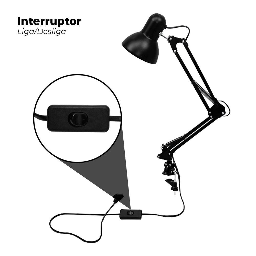 Luminaria garra Articulavel Abajur Pixar de Mesa Articulada com Base e Garra Escritorio Quarto Preta
