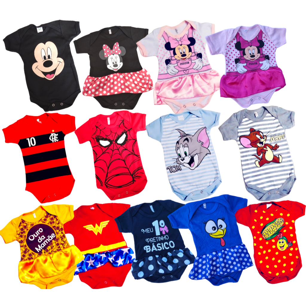 Body bebê temático infantil mesversário | Fantasia personalizada | Suedine 100% algodão Personagens