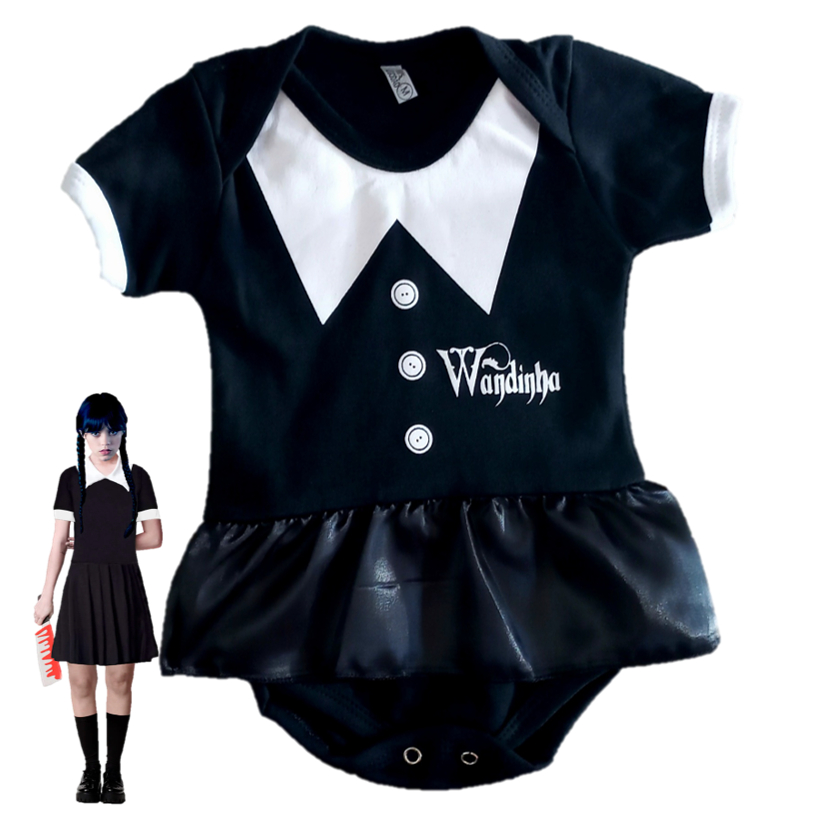 Body Bebe Tematico Wandinha Fantasia Mesversario Familia Addams