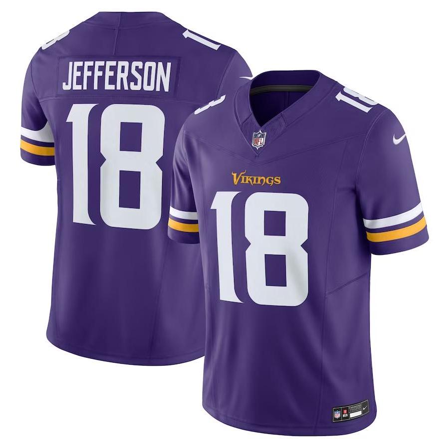 2023-24 Nova Camisa Masculina De Futebol Americano Minnesota Vikings Justin Jefferson Roxo Limitado