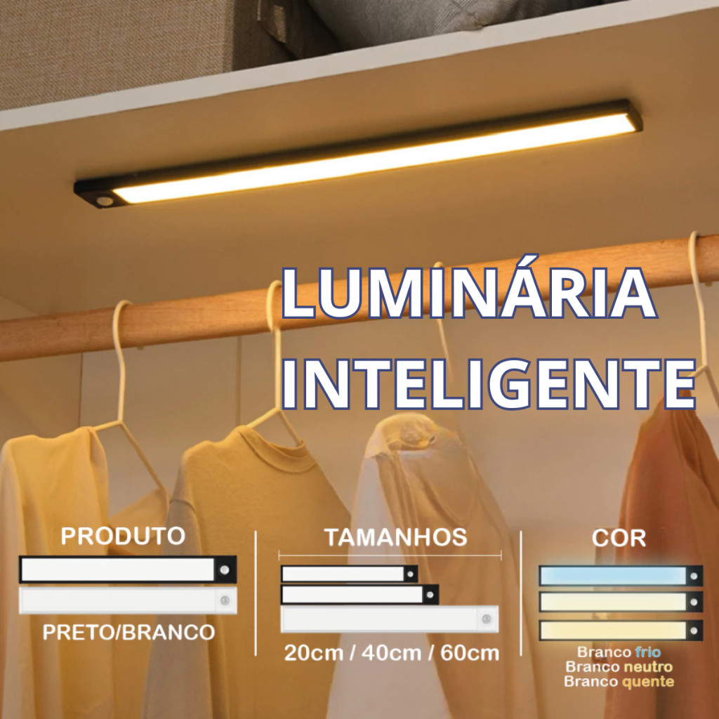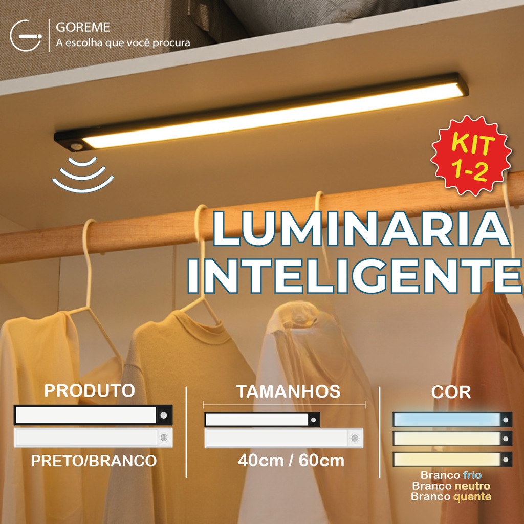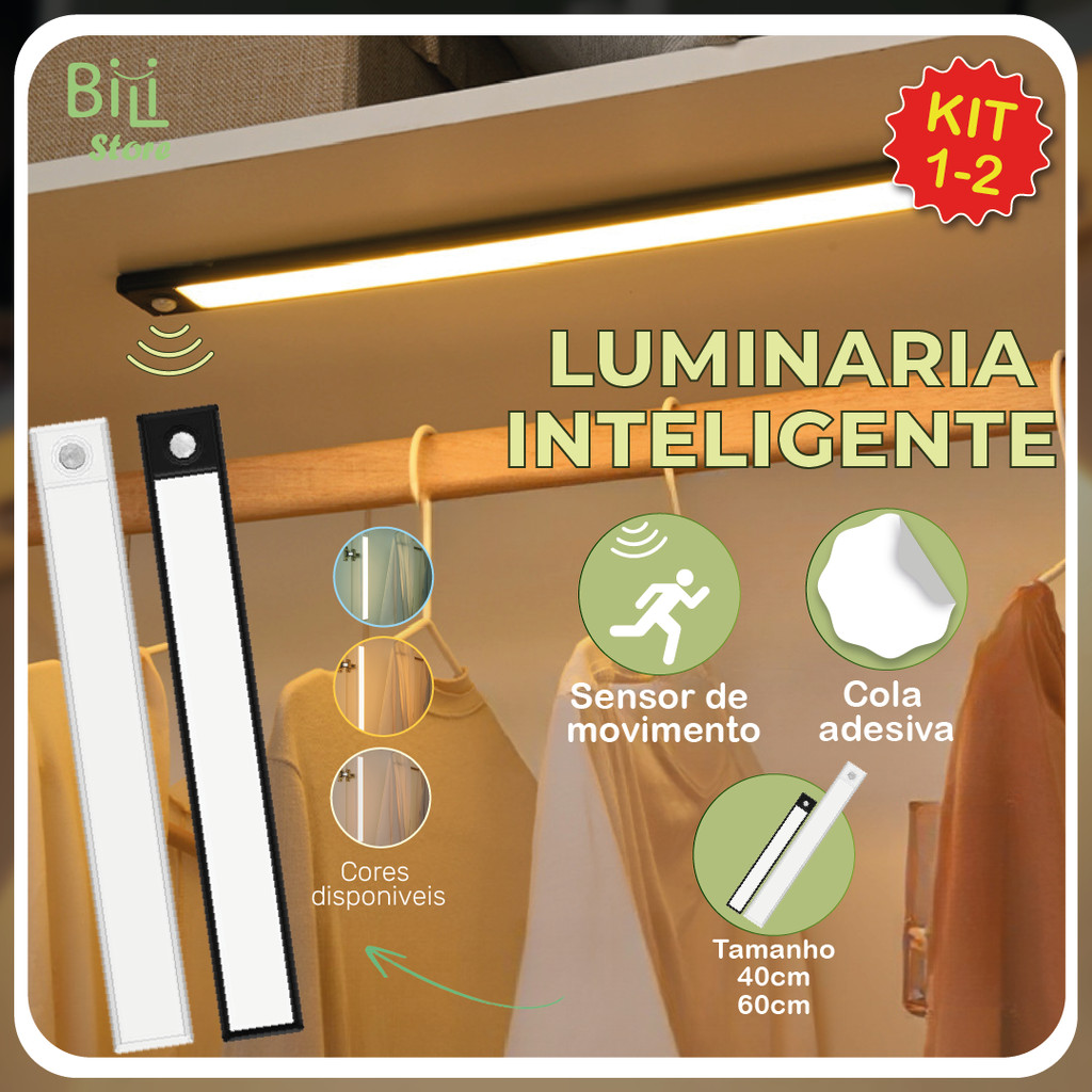 Kit 2 Smart Luminária Inteligente Ultra LED com sensor de movimento sem fio e Recarregável USB fino barra 40/60cm
