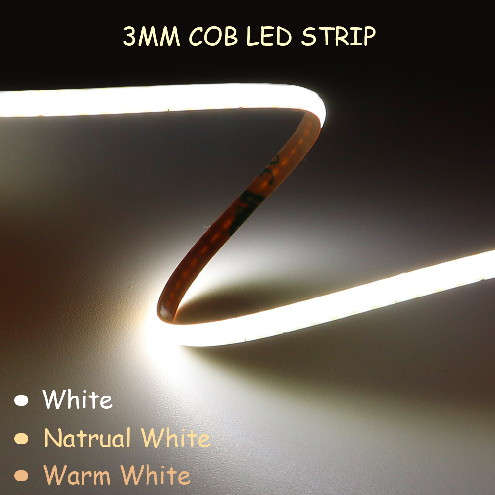 3mm 400LEDs/m RA90 Fita LED FOB COB Fina De Alta Qualidade Macia E Flexível Barra De Luz Branca Quente Fria Para Decoração Da Casa Festival De Natal DC12V/24V