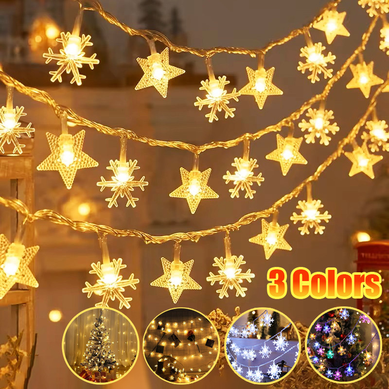 3m/1.5m Piscando Luzes De Natal Corda Criativa Floco De Neve Estrela Luz Led À Prova Dwaterproof Água Festa Decorativa De Fadas Presente De Véspera Decoração De Ano Novo