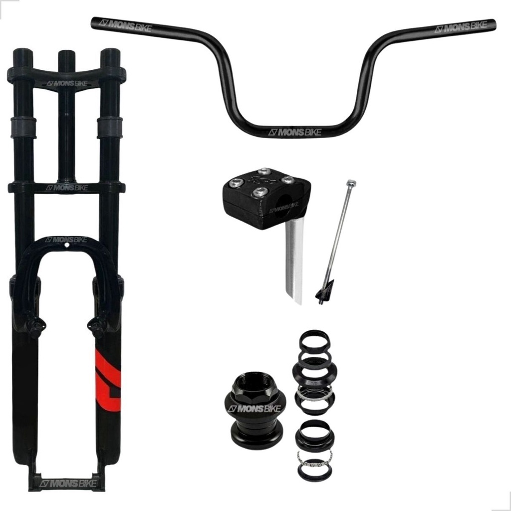 Amortecedor Bike Aro 26 Suspensão 2 Andar Standard + Guidão Alto Tipo Moto CG Titan 150 + Mesa Suporte + Caixa de Direção