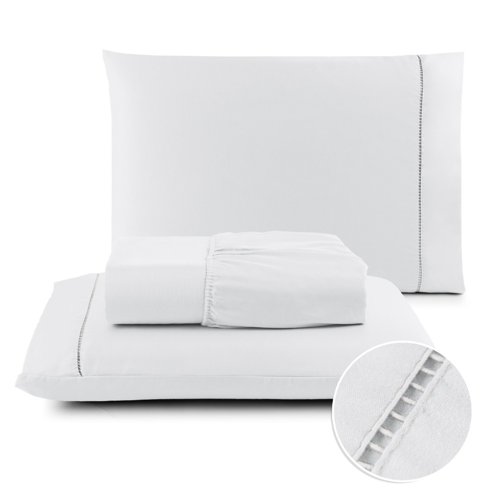 Jogo de Cama Lençol Queen 400 fios Casal Padrão Liso 3 Peças detalhe Ponto Palito Micropercal