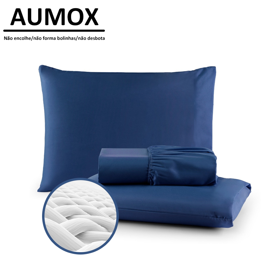 Jogo de Lençol Casal 3 Peças 400 Fios Micropercal Pelitizado com Elástico Cama Box Toque Aveludado