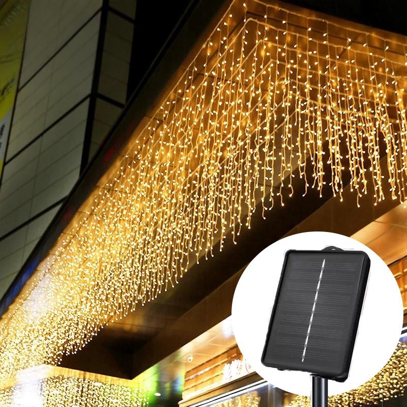 Luzes De Fadas Solares Ao Ar Livre À Prova D'água Cortina De Luz De Corda Para Festa De Natal