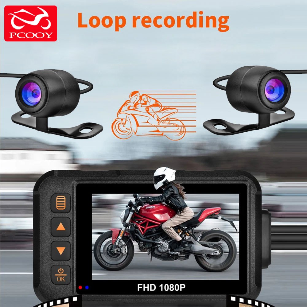 PCOOY Motocicleta 720P Grande Ângulo 3 Polegadas Dashcam À Prova D'água Gravador De Vídeo Com Fio Controle Remoto DVR Acessórios Para Câmera Dianteira Traseira