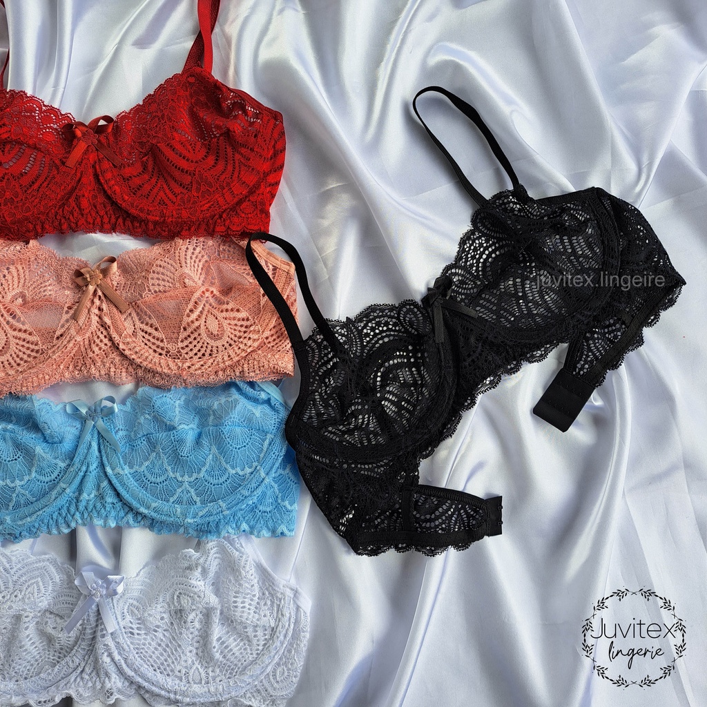 Kit 3 sutian sutiã de renda com aro de metal sem bojo (kit 3 kaylane)