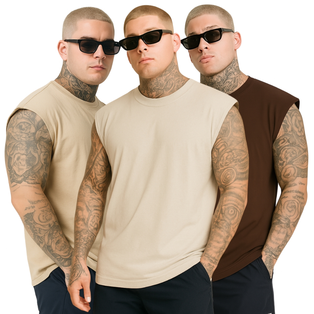 Kit 3 Camiseta Regata Oversized Camisa Streetwear Masculina Algodão Premium