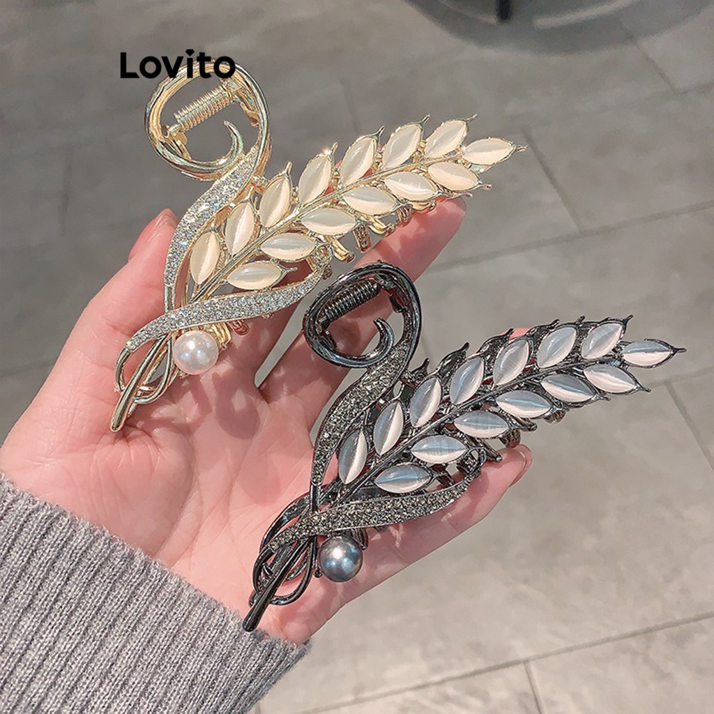 Lovito Orelhas De Pedra De Olho De Gato De Metal Com Strass Liso Casual E Grampos De Cabelo De Trigo Para Mulheres LCS05109