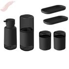 Kit Banheiro Lavabo Conjunto Jogo 4 peças Porta Sabonete Líquido Escova e Pasta de Dente Algodão Cotonete Saboneteira OU