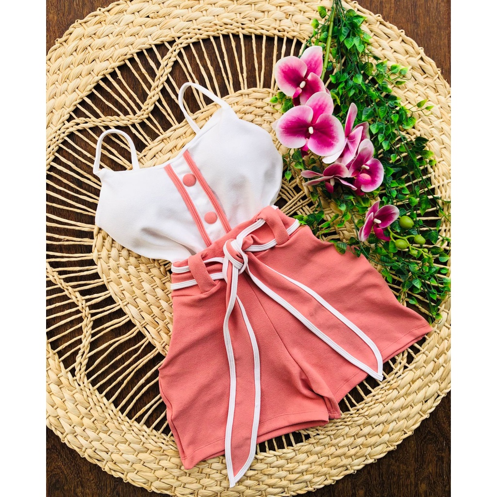 Conjunto Feminino (SHORT+CROPEED) tecido alfaiataria com bojo tendência social