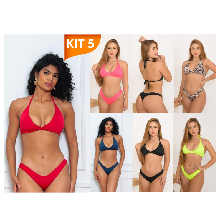 Kit 5: Biquini Asa Delta com Bojo - Biquíni Feminino - Diversas Cores