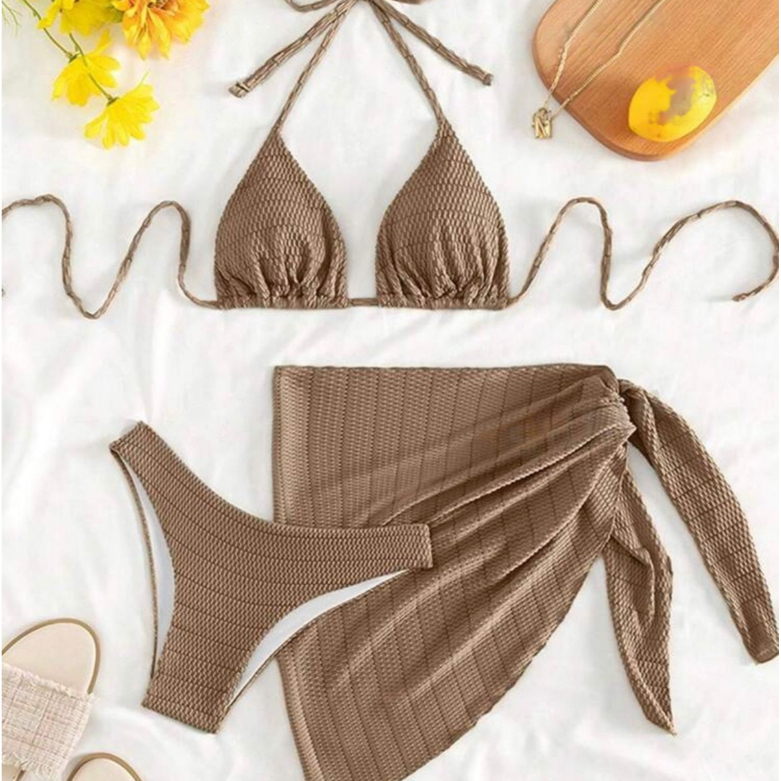 Conjunto Kit Saia Top Meia Taça Calcinha Asa Delta Ibiza Biquini Feminino Com Bojo Removivel Verão