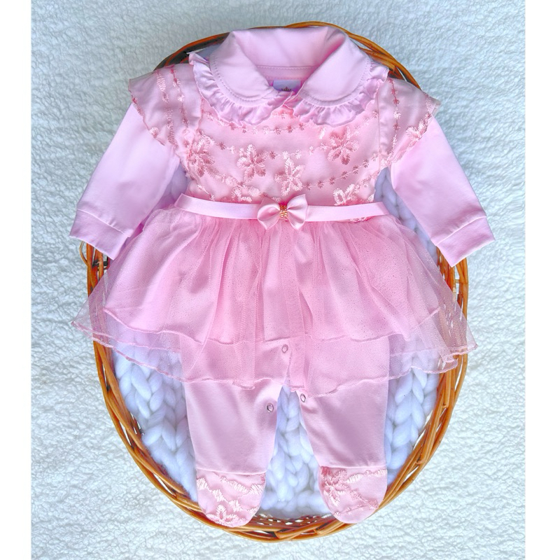 Romper body jardim encantado tule luxo baby salopete fantasia vestido infantil roupa bebê menina meia rosa
