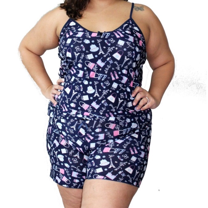 KIT 2 Baby Doll Plus Size com Alça Reguladora Short Doll Conjunto Feminino Pijama Estampado Fresquinho