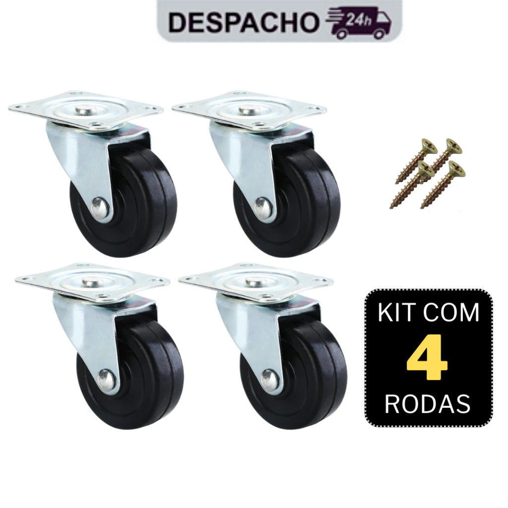 Kit 04 Rodinhas Para Moveis Pesado Com Parafusos Reforçada Rodizio Giratorio