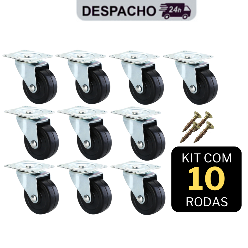 Kit 10 Rodinhas Para Moveis Pesado Com Parafusos Reforçada Rodizio Giratorio