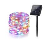 Pisca Pisca 100 Led Solar 10m Decoração Jardim Fio De Fada Colorido