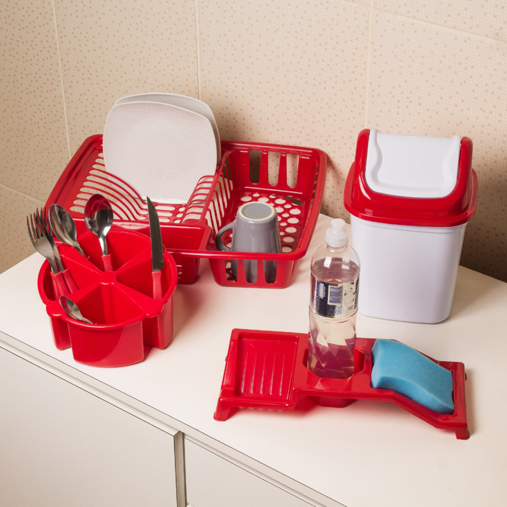 Kit Cozinha Lixeira Pia + Porta sabão + Escorredor de talher 3 Peças para pia cozinha casa - Plasconex