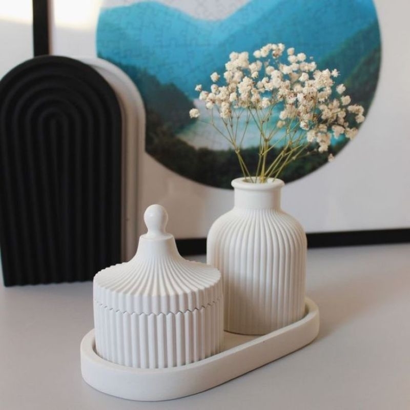 Kit 3 Peças Porta Joia + Vaso + Bandeja Decorativo Casa Cozinha Escritorio