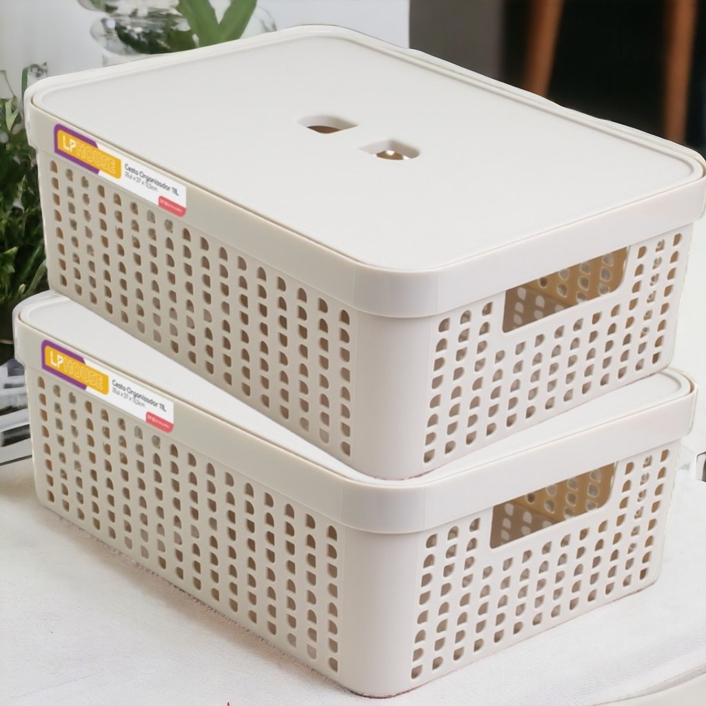 Kit 2 Caixa Organizadora com Tampa 11 Litros Cesto Grande em Plástico Resistente
