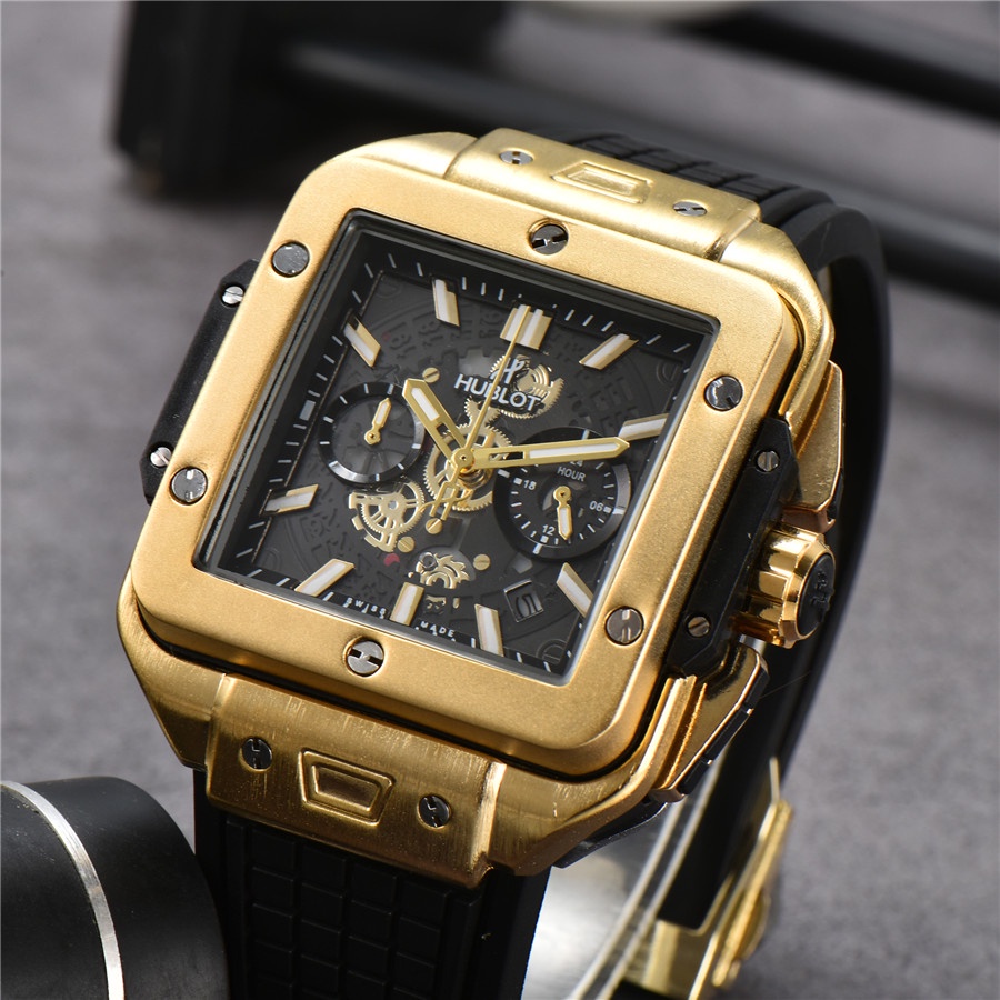Novos Relógios De Luxo Masculinos Código Cronógrafo Quadrado Calendário Pulseira De Borracha Moda Esportiva Marca Homens