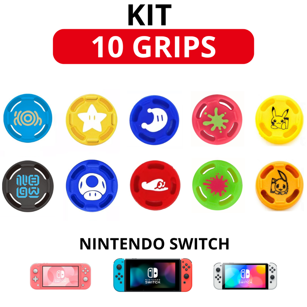 Kit 10 Grips Analógicos Borrachinha Nintendo Switch Oled V2 V1 Lite Joy Con - Acessorio Nintendo Mario Zelda Pokémon