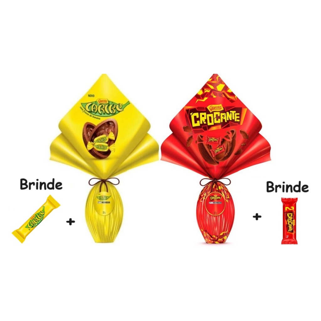 Kit Com 02 Ovos De Páscoa 01 Caribe Garoto + 1 Crocante Garoto - Envio Imediato! + 02 BRINDES - Juntamos os 2 Melhores Ovos da Garoto!!!