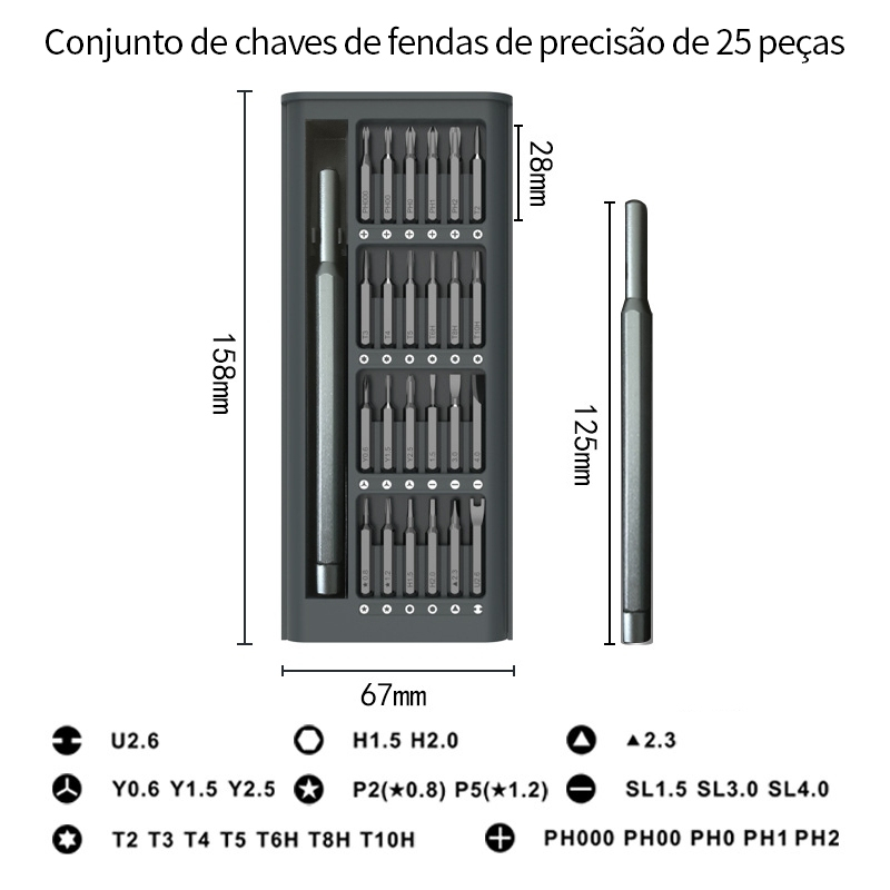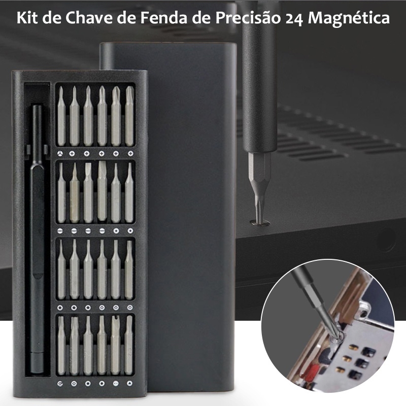 Kit Jogo Ferramenta Chave Magnética Precisão 24 Peças Pequenos Reparos Compatível - Celular Iphone Android Videogame Xbox Nintendo Switch Computador Notebook Macbook S2