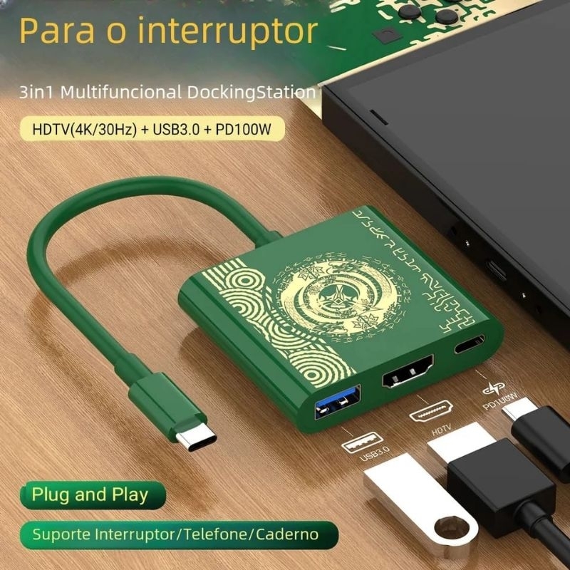 Switch Dock para Nintendo Switch e OLED, Nintendo Switch Docking Station para TV, Nintendo Switch Base Acessórios, Switch Portable Travel Dock, Adaptador USB C para HDMI para Steam Deck/Mac