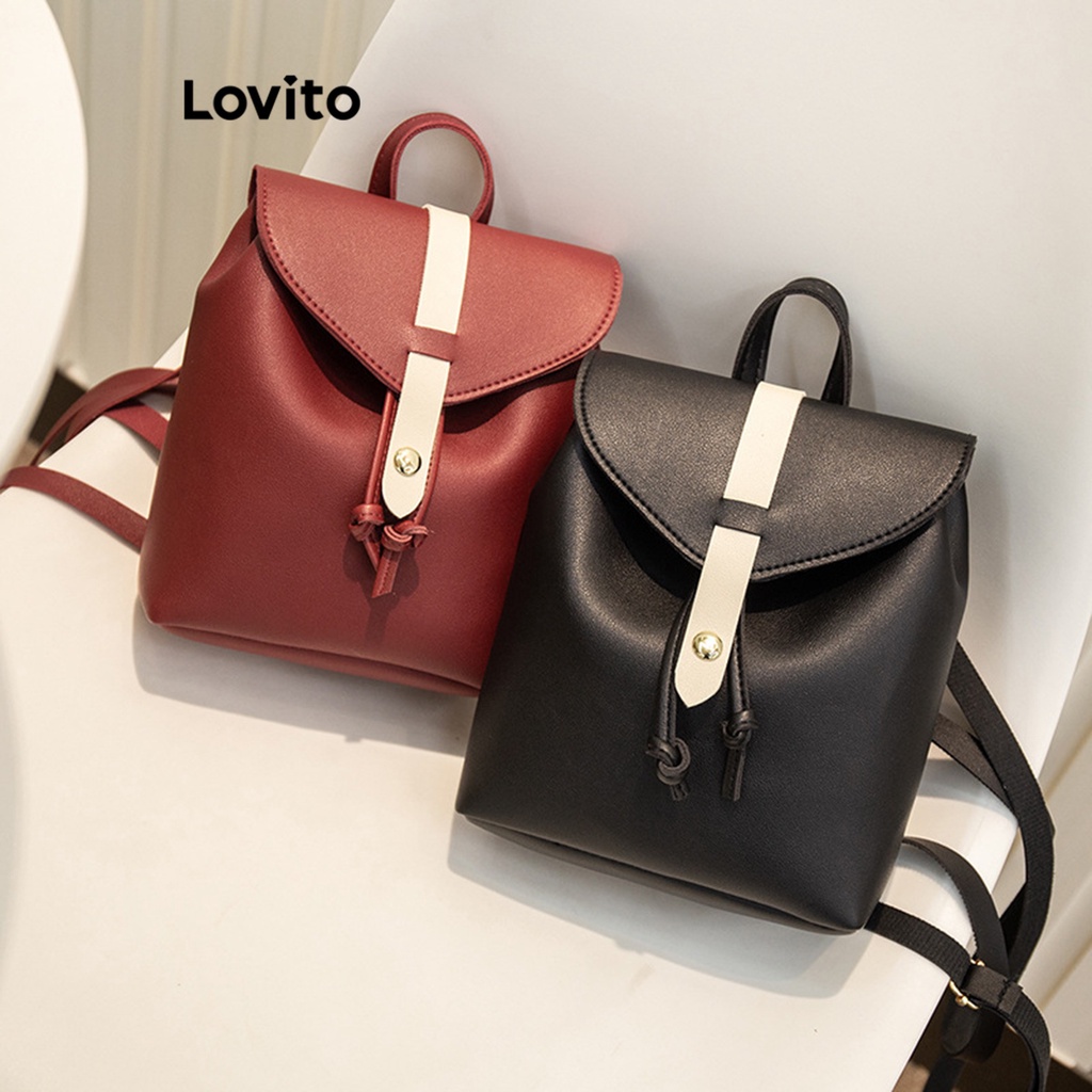 Lovito Casual Simples Com Cordão Colorblock Requintado De Alta Capacidade Mão Bolsa De Ombro Mochila Para Mulheres LFA06260 (Cinza/Rosa/Vermelho/Preto)
