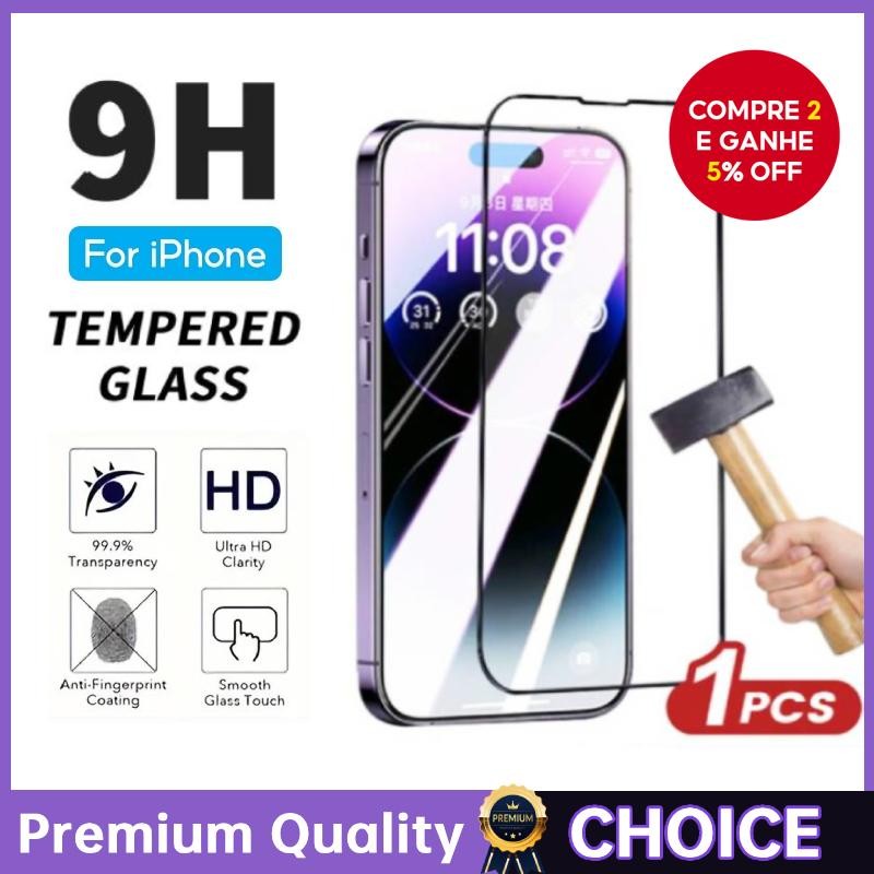 Protetor De Tela De Vidro Temperado 9H Para iPhone 16 15 14 13 12 11Pro Max XS XR 7/8PLUS HD Filme Transparente