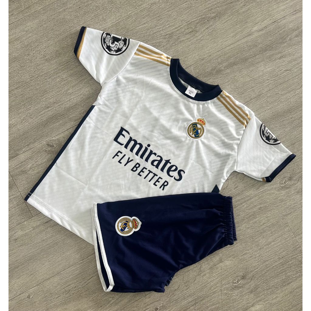 Kit Conjunto infantil juvenil futebol Real Madrid 2024 Vini Jr. Tamanho do 06 ao 14