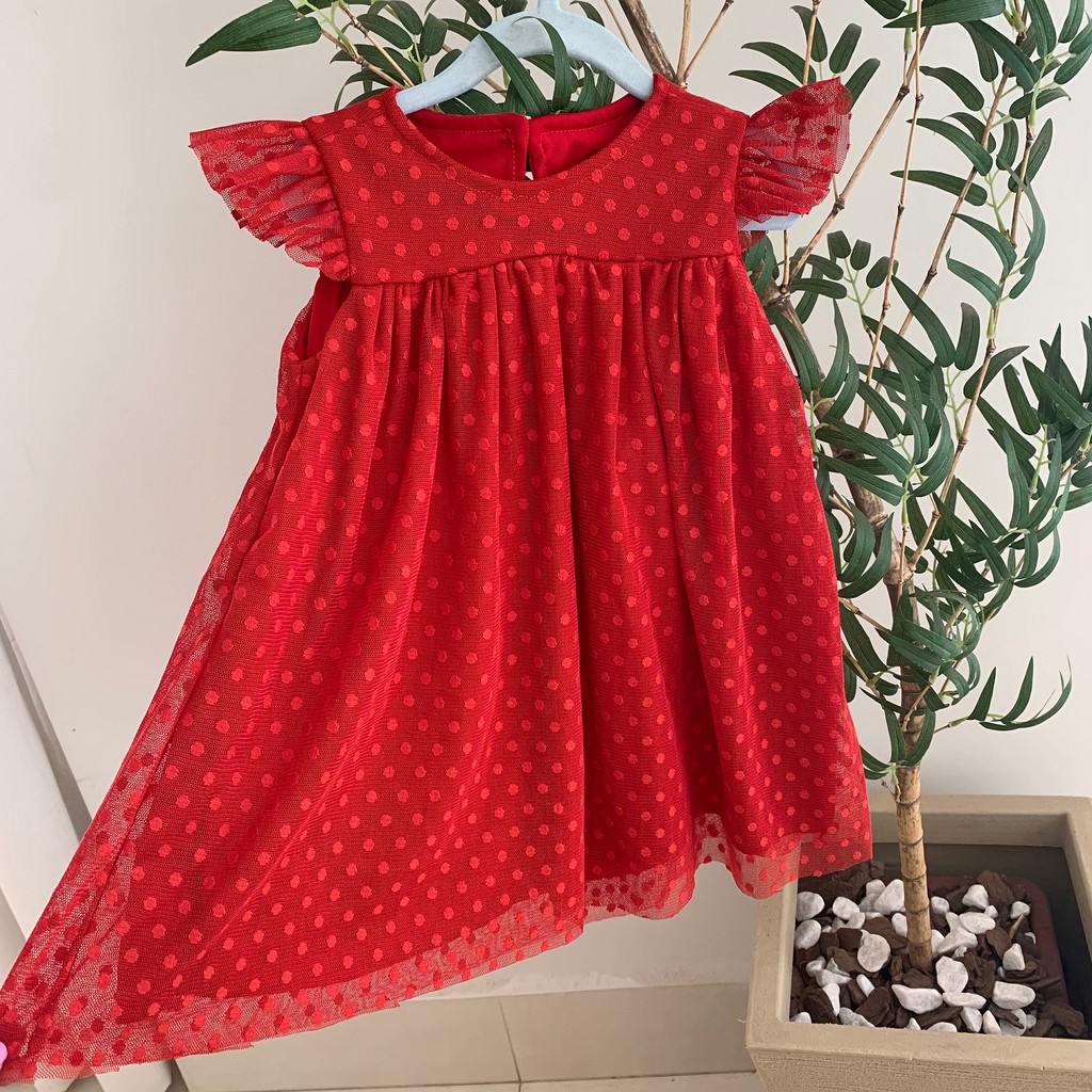 Vestido infantil menina modinha tule bolinhas poá vermelho festas, natal, fim de ano
