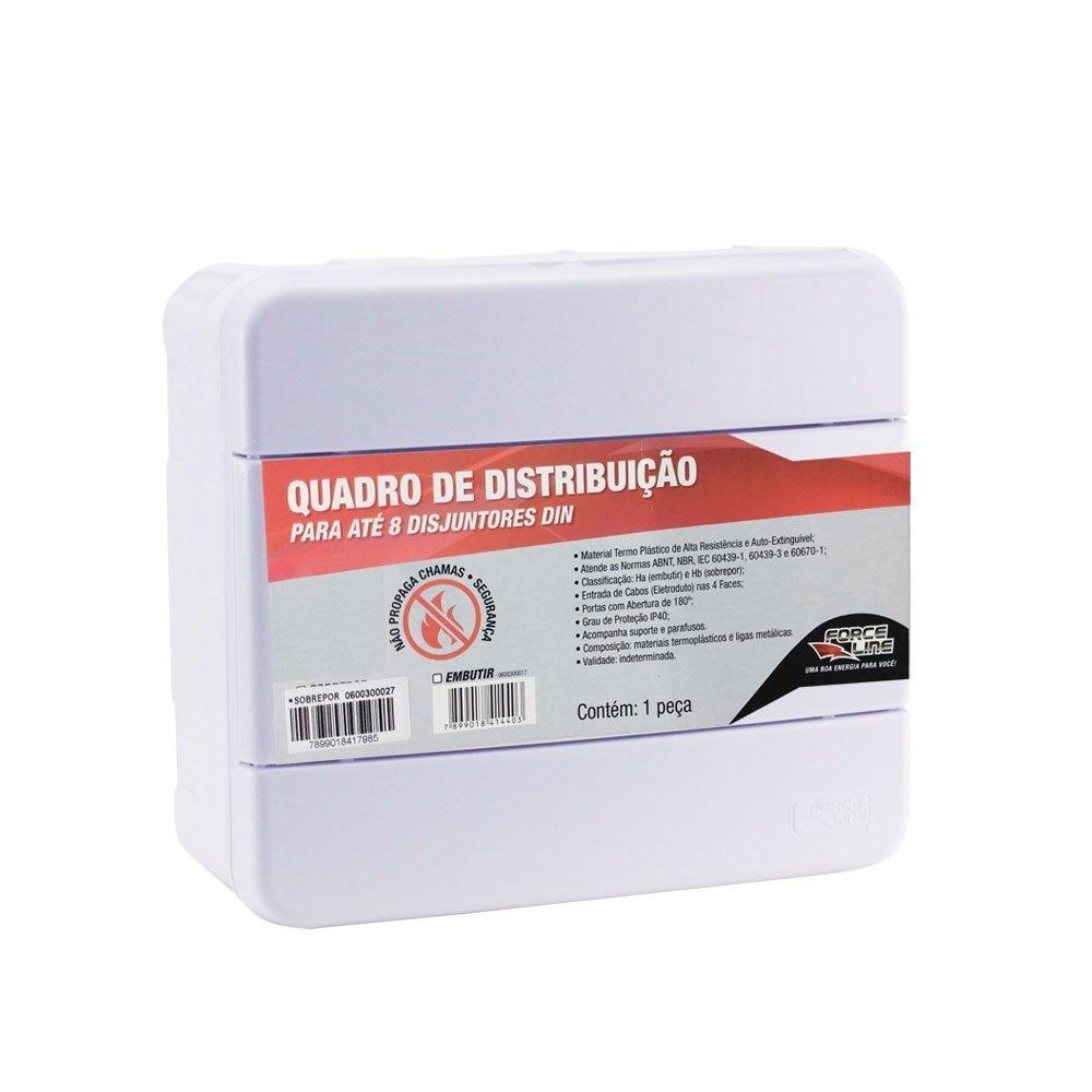Quadro de Distribuição P/Sobrepor P/8 Disjuntores DIN Branco - Force Line