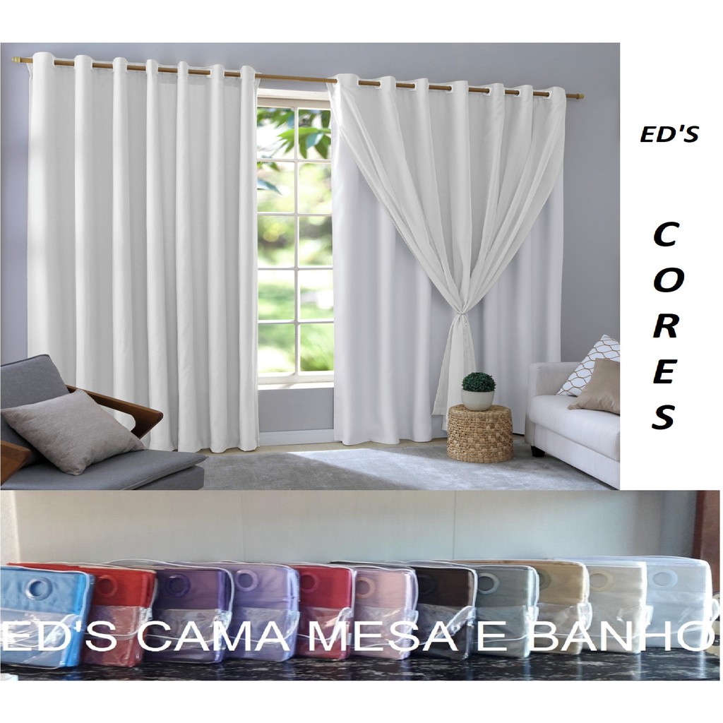 Cortina Blackout PVC LONA com tecido Voil = 2 folhas de 1,40m largura x 2,30m de altura Para Varão de até 2m