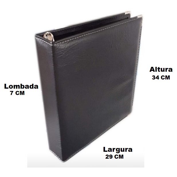 Pasta Fichário em Courvin Costurada Com Reforço nas 4 Pontas Para Folhas de 24 Moedas Ou Cédulas 4 Argolas