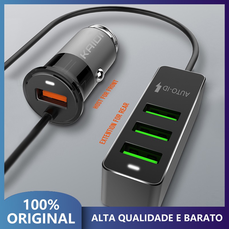 KAIDI USB Car Charger 4 Portas FAST QC3.0 + 2.4A + 3.1A Universal Adaptador com 120 CENTÍMETROS de Extensão USB Rápido cord Cabo para Telefone Do Carro MPV