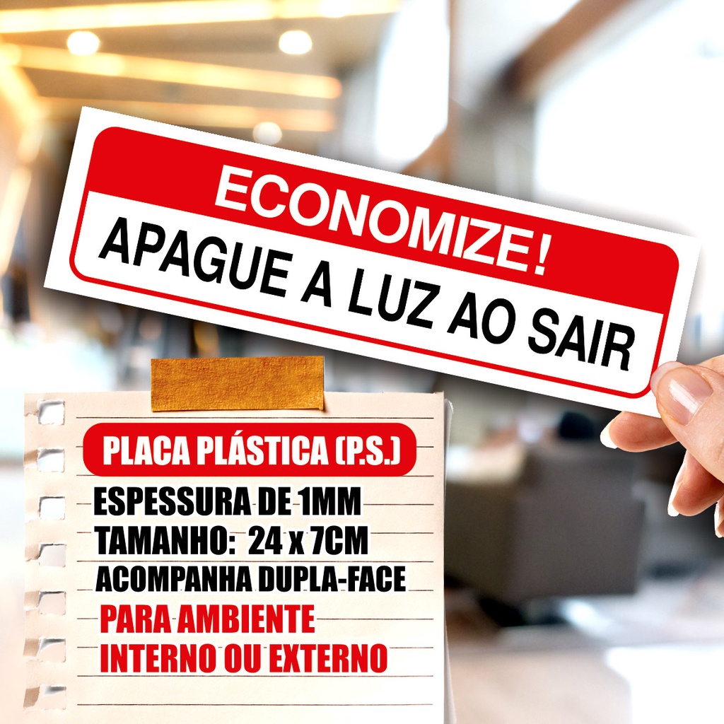 Placa Sinalização Aviso Economize Apague Desligue a Luz Ao Sair ENVIO RÁPIDO