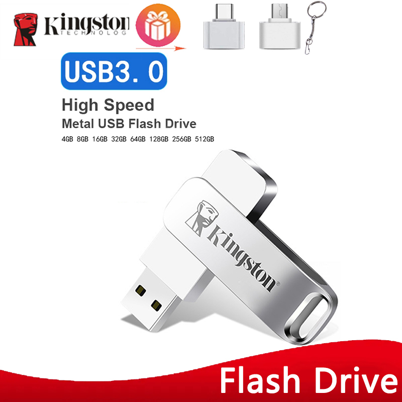 Kingston Drive Flash Driver Rotativo Metal Prata 32GB 64GB 128GB 256GB USB3.0 512GB 1TB 2TB Portátil USB