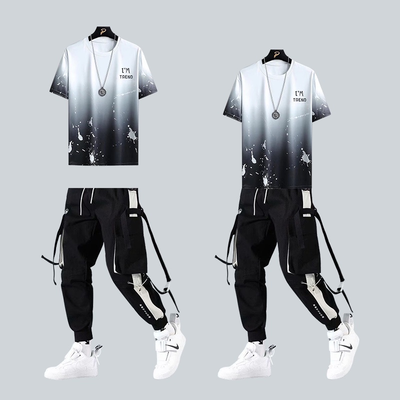 Conjunto Camiseta Masculina Folgada Casual Hip Hop Com Mangas Curtas E Gola Média