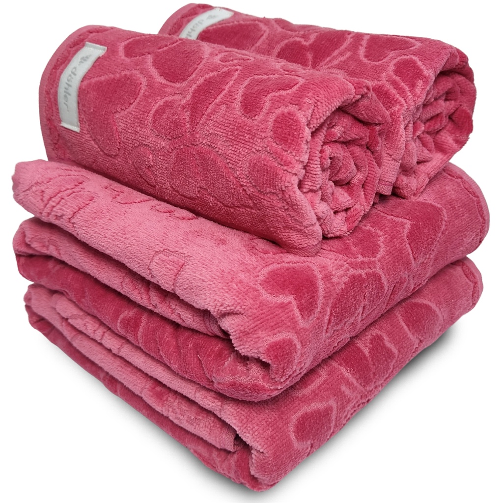 Jogo de Banho 4 Peças Romance Dohler Aveludada 100% Algodão Toalha Fio Penteado Coração Borboleta
